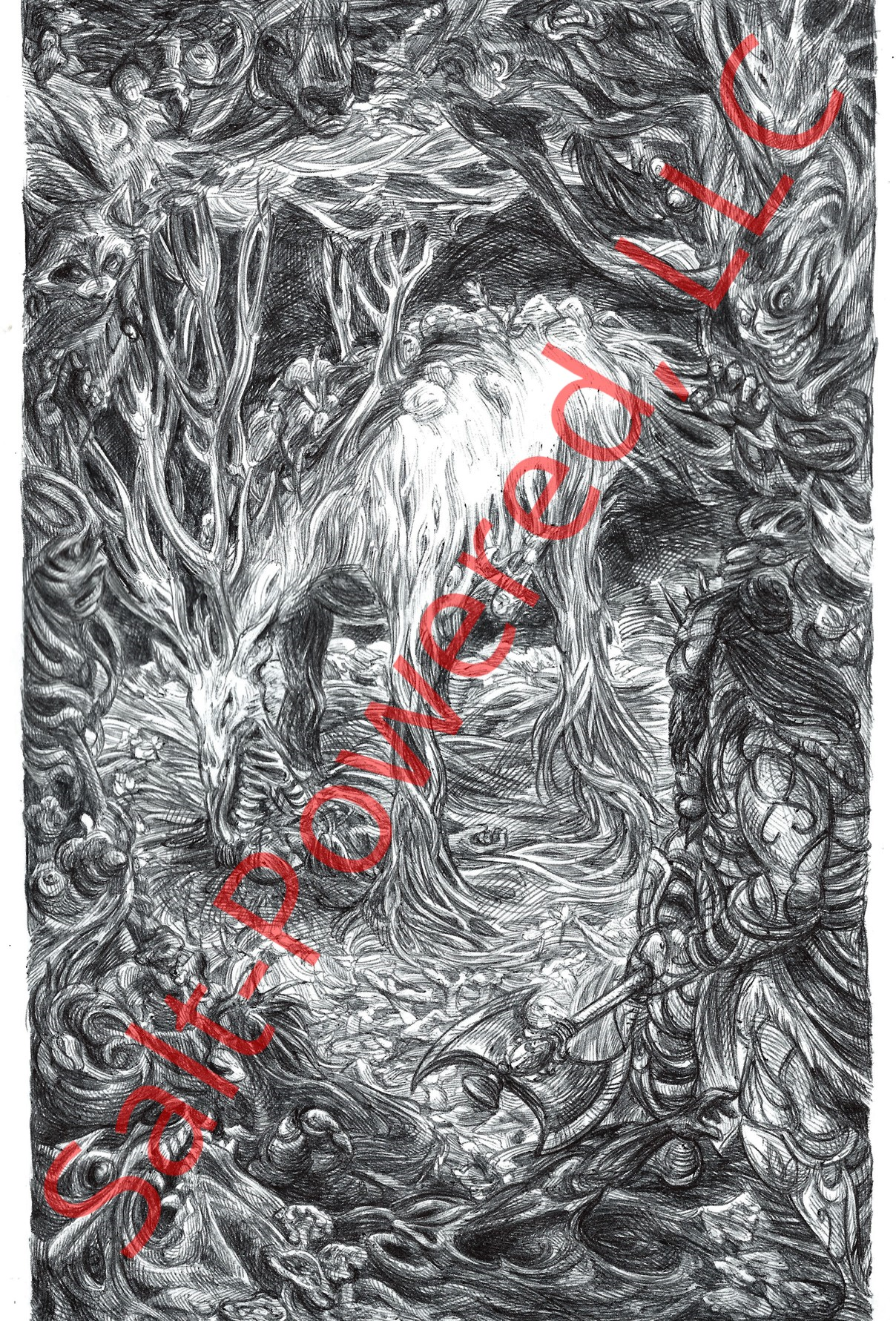 For its part, Mother’s magic was devastatingly effective. Through the flare of the wolf’s scars, its own blood shot from its torso in a salvo of glistening, crimson spikes, wrapping about its arms and legs and solidifying, pressing, suddenly crystalline and sharp against its flesh. Even so, bloody and nearly crucified, the wolf was not done. With a sudden, tinny crack, it wrenched its right arm free of its gruesome restraints and grabbed Mother by the neck, fingers curling around the bottom of her helm. I willed my legs to move, desperately trying to close my distance to the beast as I saw its claws slowly elongate, puncturing the sides of her head. Within an instant, her body went limp.